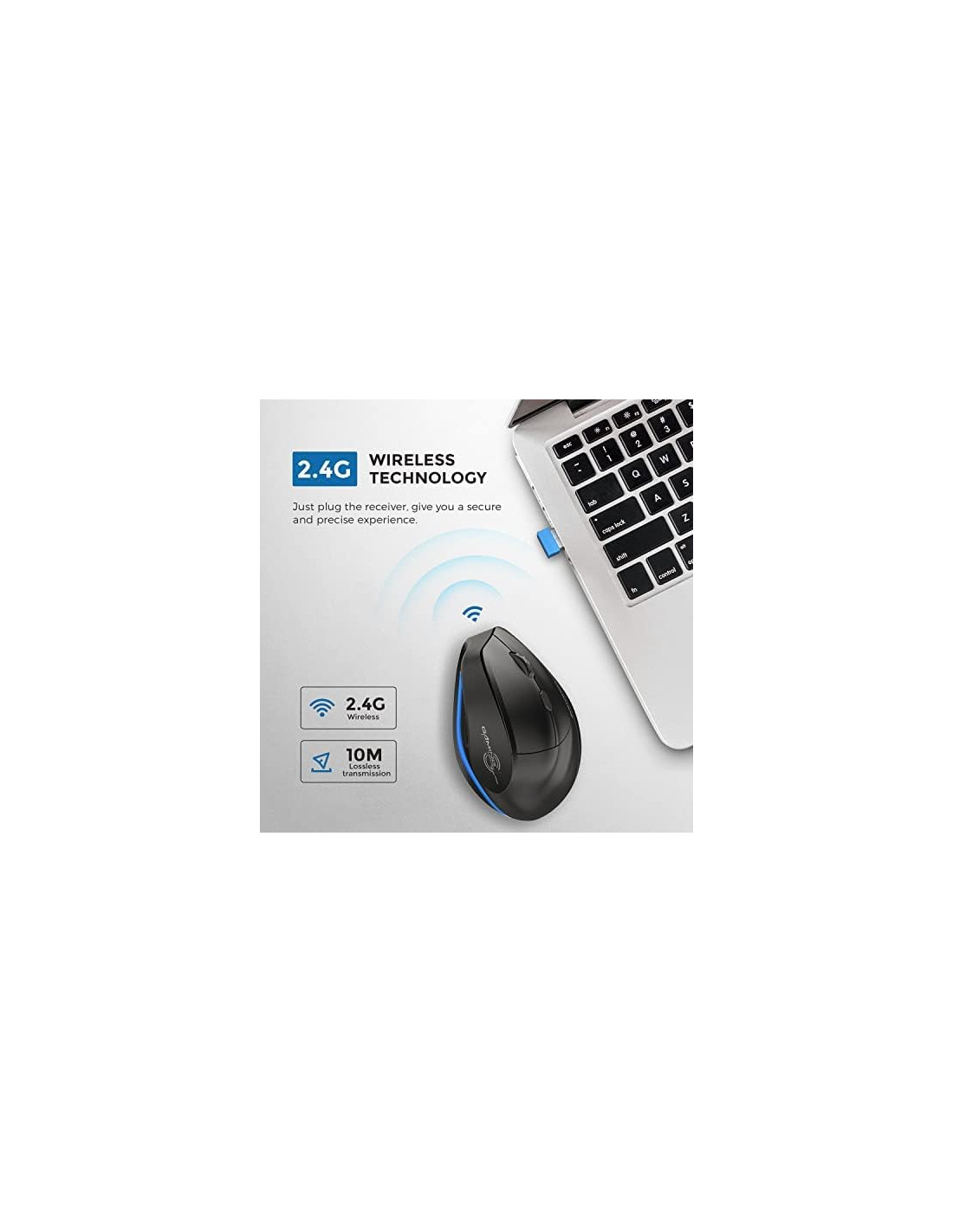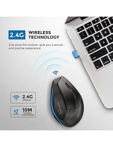 - Tecnología inalámbrica de 2,4 GHz: el mouse inalámbrico ergonómico adoptó la tecnología inalámbrica avanzada de 2,4 GHz, puede funcionar de manera estable y rápida dentro de una distancia de 10 m sin interferencias. Admite Plug and Play: simplemente conecte el receptor USB Nano incluido al puerto USB de su computadora, no se necesita un controlador adicional.