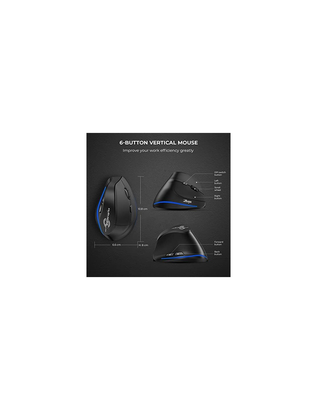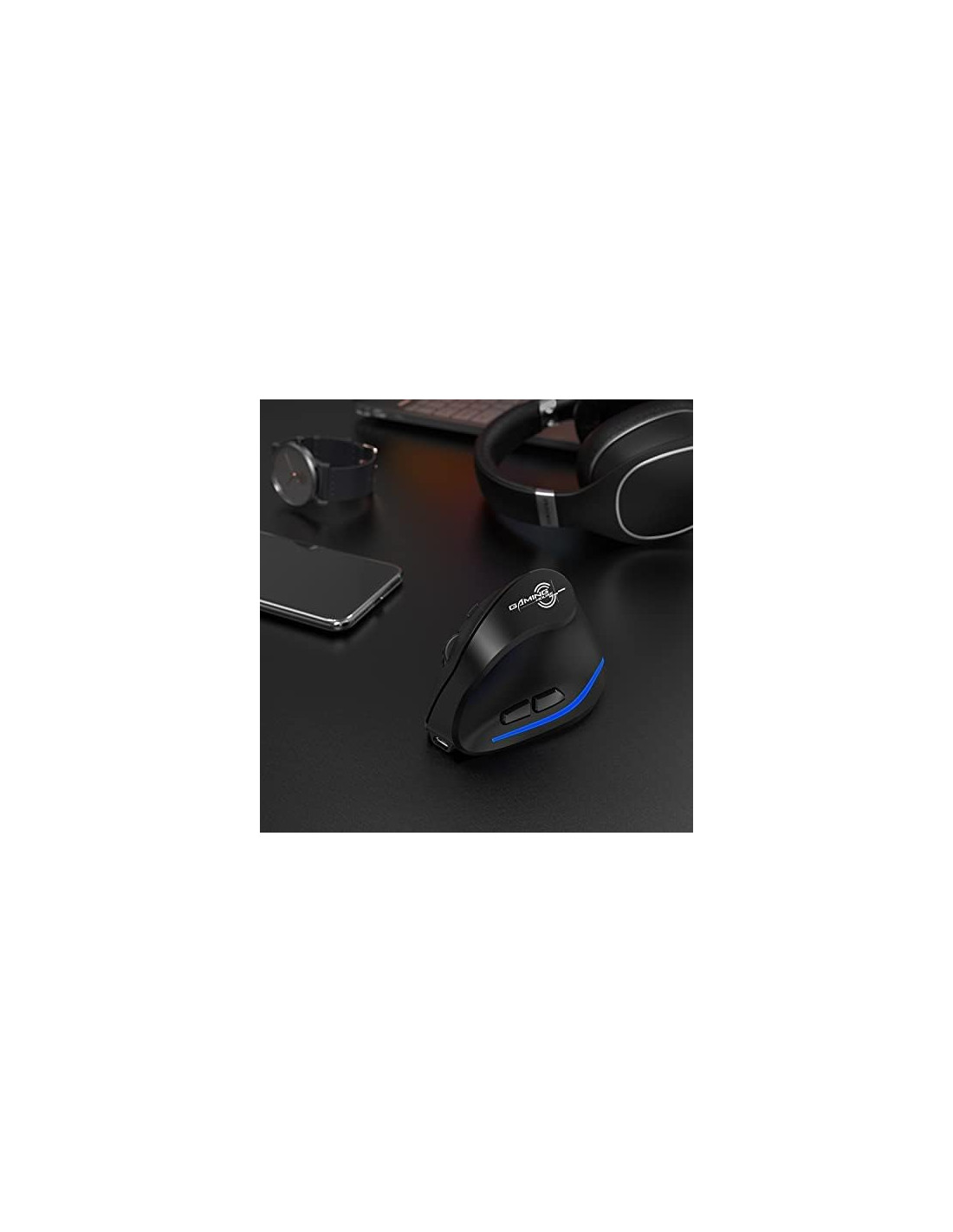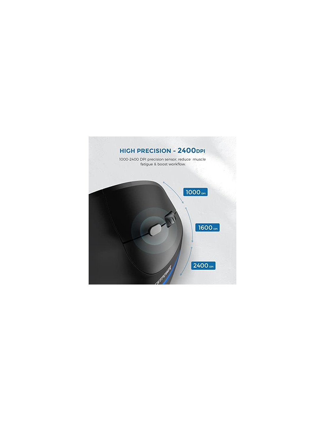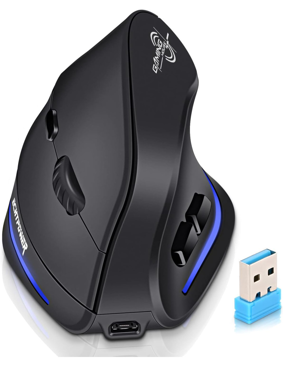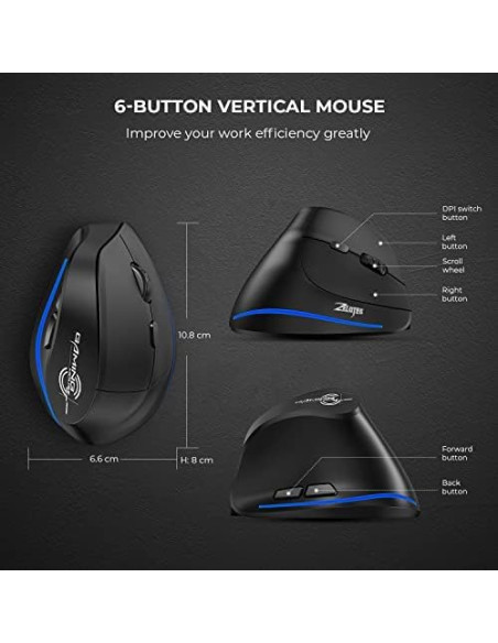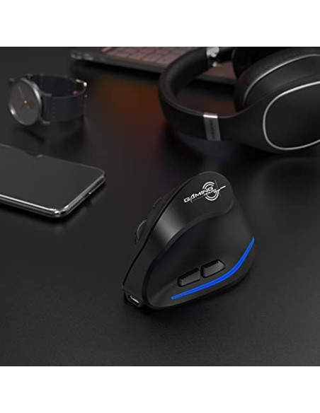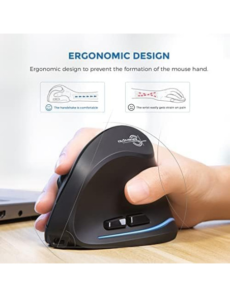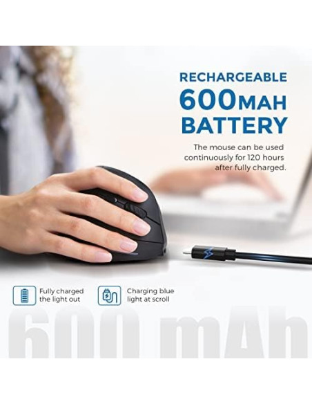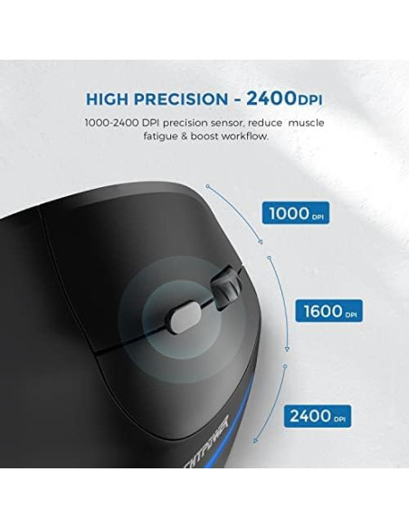- ECHTPower Ratón ergonómico inalámbrico, recargable, vertical, inalámbrico, 6 botones, 1000/1600/2400 DPI, 2,4 G, óptico, USB, vertical, para portátil, escritorio, PC, Macbook, ratón inalámbrico, color negro