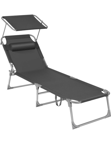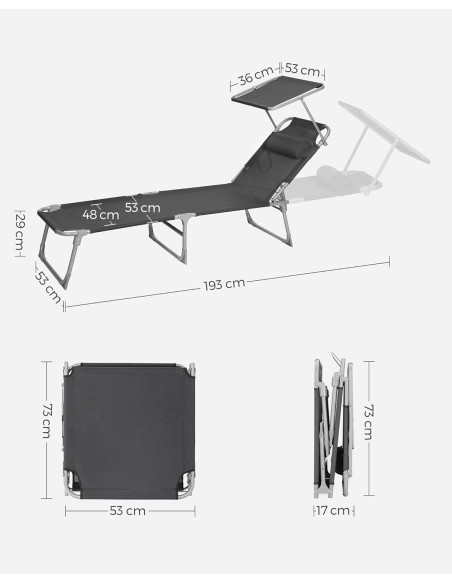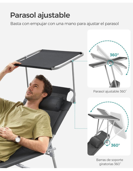 - [Sombra fácil del sol] Está tumbona está equipada con una sombrilla que permite leer revistas sin cegarse mientras se disfruta del sol en el patio. Ni siquiera tienes que levantarte, puedes ajustar el ángulo de la sombrilla empujando con la mano