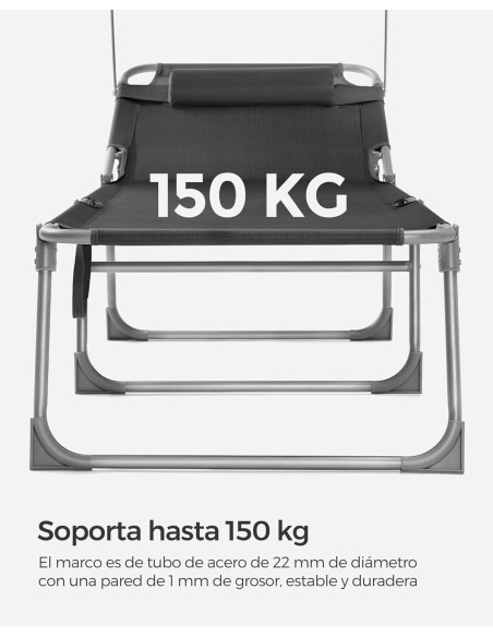- [Estable sin tambalearse] El marco de acero con recubrimiento de polvo y juntas reforzadas permite que la silla soporte hasta 150 kg, con pies antideslizantes para mayor estabilidad, puede acompañarle a disfrutar del ambiente veraniego en la piscina