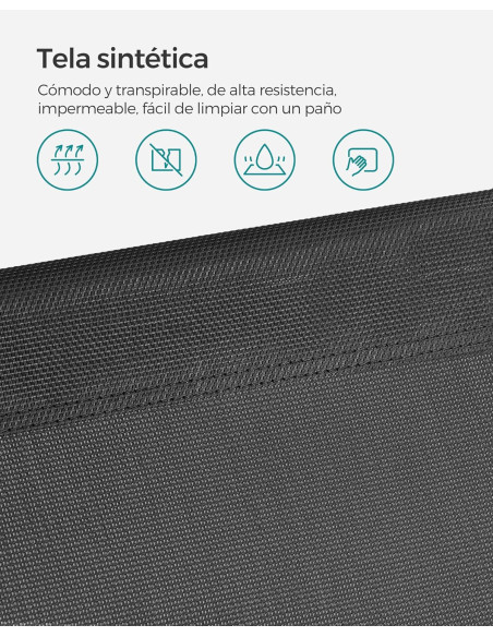 - [Tela transpirable] La superficie de esta silla de exterior es de tela sintética transpirable. En verano, la tela sintética transpirable puede mantener el cuerpo ventilado, para que te mantengas fresco y no te quede pegado a la silla por el sudor