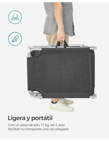 - [Plegable y portátil] Gracias a las dos asas, esta tumbona plegable sólo mide 17 x 53 x 73 cm una vez plegada, para que puedas trasladarla fácilmente, tanto si desea colocarla junto a la piscina como en el patio