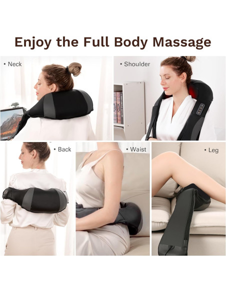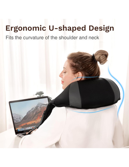 - Uso Múltiple: El diseño ergonómico en forma de U de este masajeador proporciona un cómodo masaje para el cuello, la espalda, los hombros, la zona lumbar y las piernas. El envase portátil y sofisticado le permite llevar el producto consigo en todo momento, para que pueda disfrutar de la relajación en casa o en la oficina.