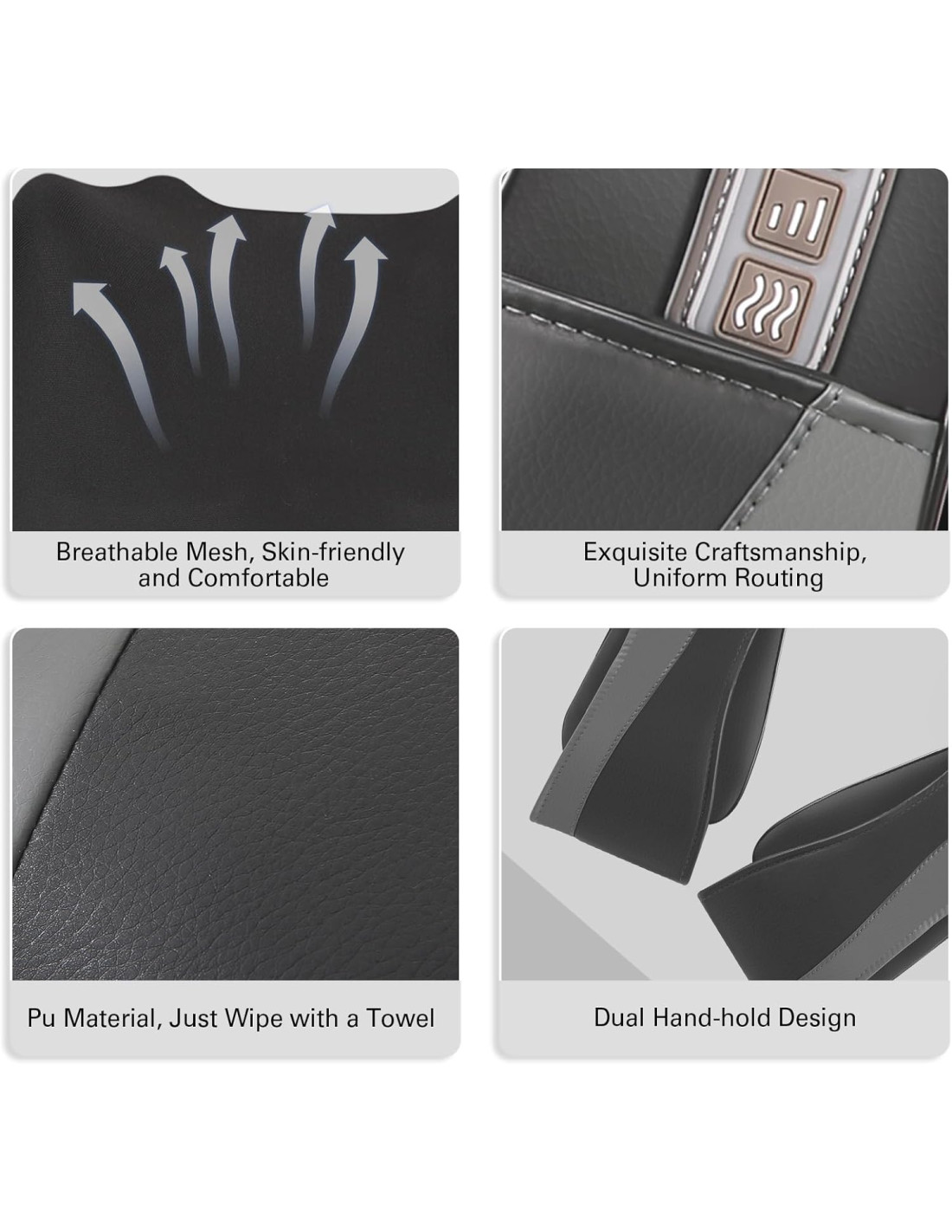 - Material de Cuero de PU: el masajeador de cuello está hecho de tela de malla transpirable y cuero de PU de alta calidad, que no irrita, es transpirable, suave y cómodo. Sólo hay que limpiar el cuero de PU con una toalla, es fácil de limpiar y mantener. Además, el diseño cruzado a dos manos permite controlar la intensidad del masaje y estabilizar la manta de masaje durante el mismo para mejorar la experiencia de uso.